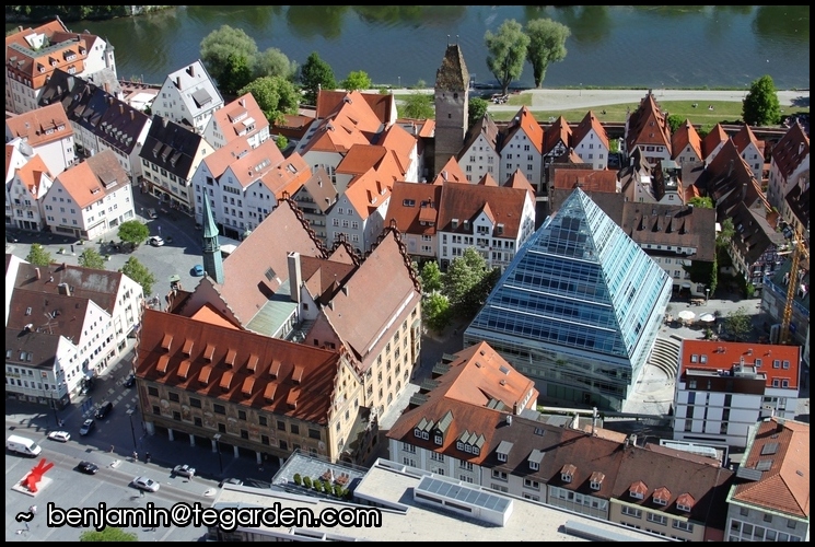St. George’s Catholic Church Dreifaltigkeitskirche The Marktplatz with Rathaus and public library Looking down the Danube into the countryside The Schiefes Haus, crookedest hotel in the world The Ulmer Münster, tallest church in the world