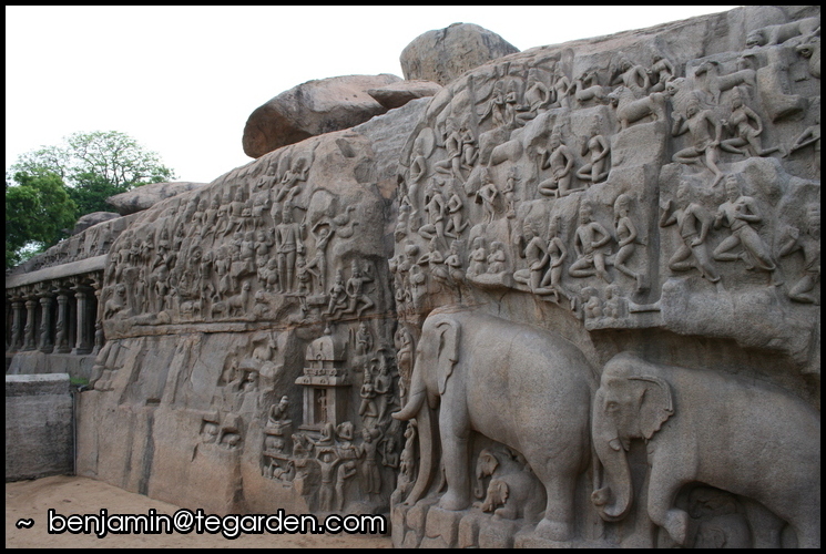 Lounging monkey Carved columns A wall of deep relief carving An entire temple complex carved out of stone