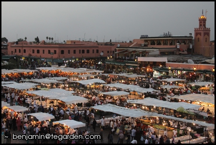 The Koutoubia MosqueThe food stalls at Jemaa el FnaThe hustle and bustle of the souksThe main courtyard of the Badii PalaceDecorative element at the Bahia PalaceThe Saadian tombsThe wares of a spice vendorThe courtyard of the Musée de MarrakechThe Ben Youssef Madrasa
