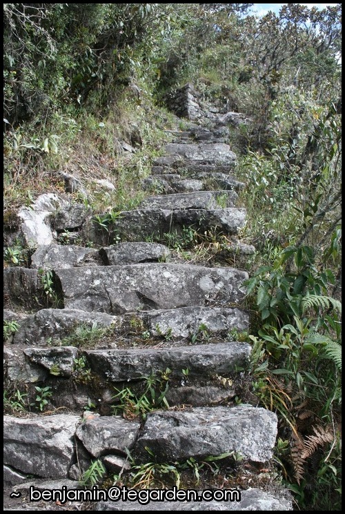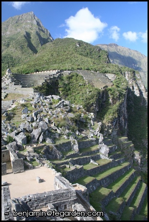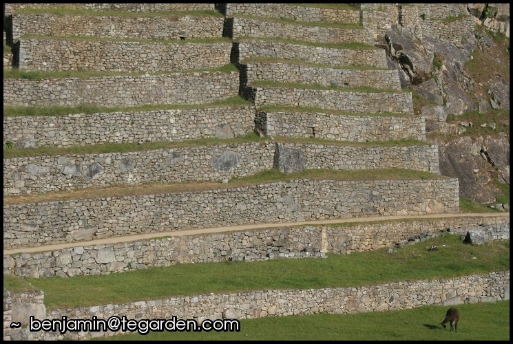 The temporary PeruRail station at PiscacuchoThe small town of Aguas CalientesThe Machu Picchu ruinsA herd of llamas¡Llama!The northeast terracesMassive stepsTerraced agricultureMount Machu Picchu (eastern slope)Mount Machu Picchu (western slope)A typical section of the Mount Machu Picchu “trail”, which climbs 2300 vertical feet over approximately 3 milesFrom the summit of Mount Machu Picchu